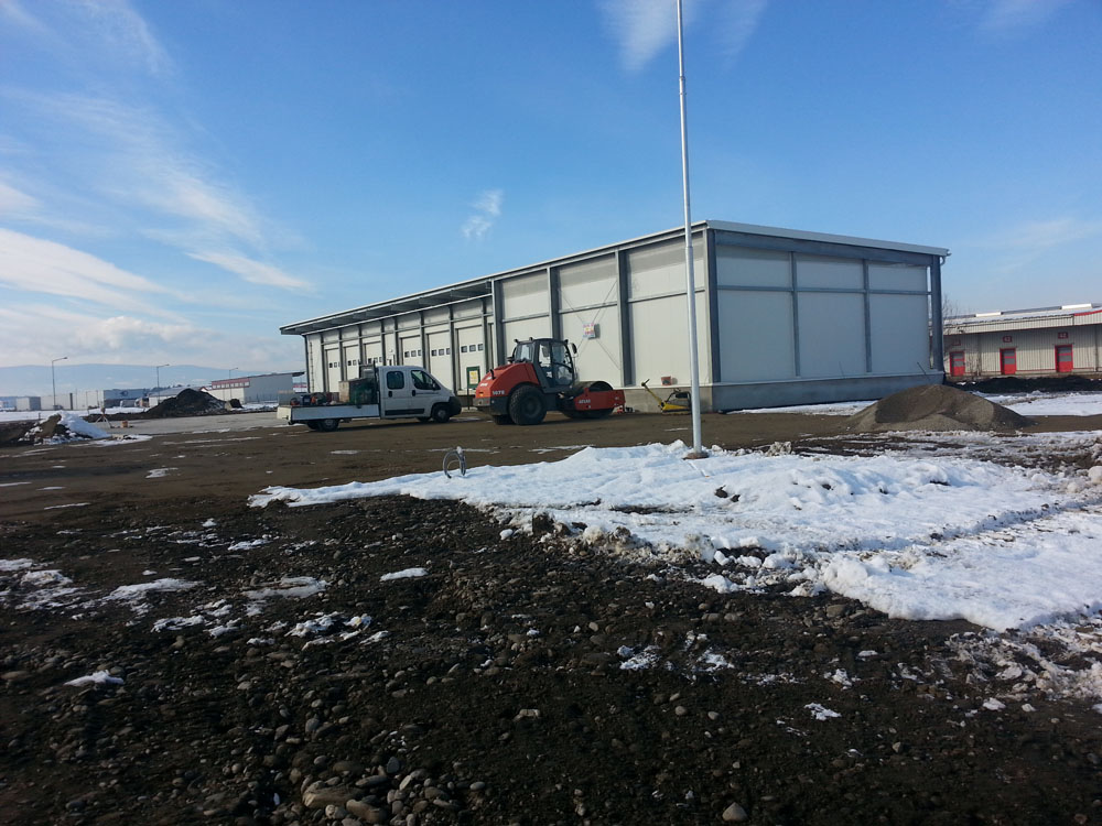 Den ersten Schritt bei der Fertigung einer Industriehalle bildet die Errichtung des Fundaments. Erst dann beginnt der eigentliche Hallenbau. Dabei kommen Holz- oder Betonfertigteilelemente namhafter Hersteller zum Einsatz.