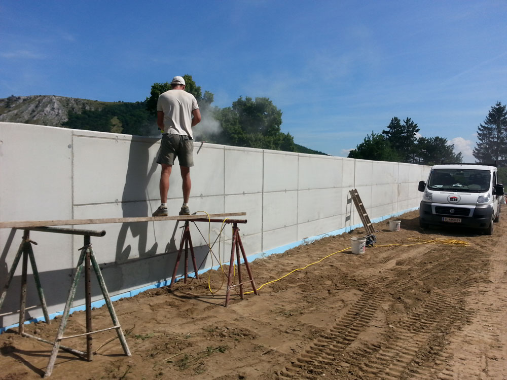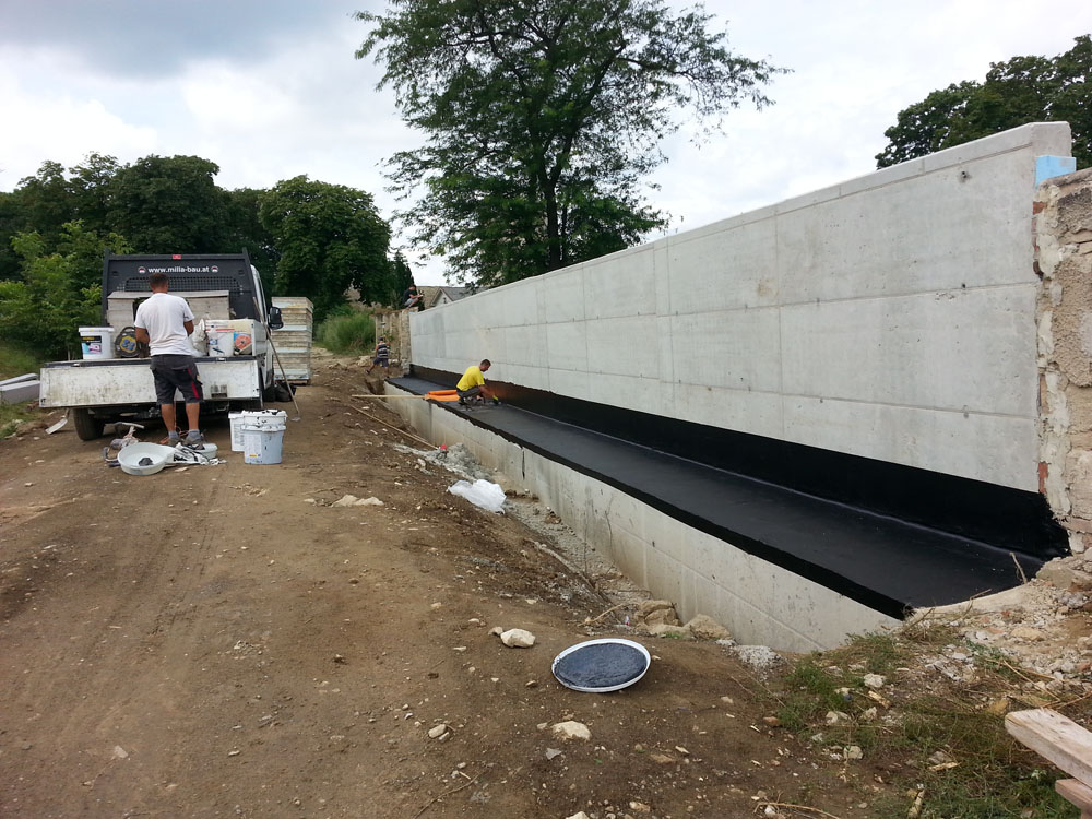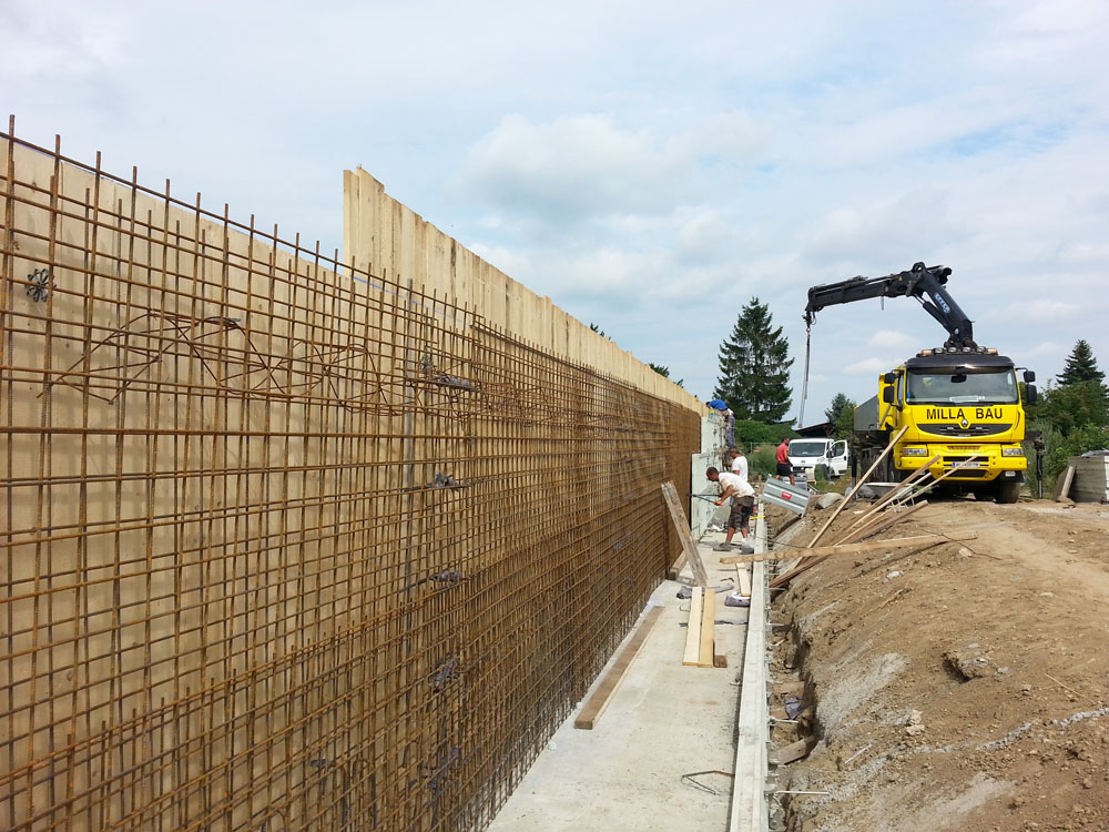 Bei den Aushubarbeiten achten wir genau auf die erforderliche Größe. Es folgen die Kanalverlegung, Beton- und Stahlbeton-, Mauer- und Versetzarbeiten. Bei Bedarf arbeiten wir natürlich auch mit Sichtbeton oder Stahlbetonfertigteilen, denn mit einem fachkundig ausgebauten Stahlbetonkeller schützen Sie Ihre Innenräume vor dem Eindringen von Feuchtigkeit. Schließlich übernehmen wir sämtliche Dämmarbeiten an Fassade und Putz.